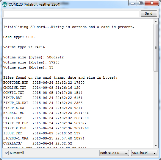 Once you have your Feather working, you probably want to rock out with some SD card reading and writing! Luckily, the Arduino IDE has an SD card library that works great, and it even comes with the IDE!