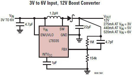 LT8335 2 A Boost/SEPIC/Inverting DC/DC Converter