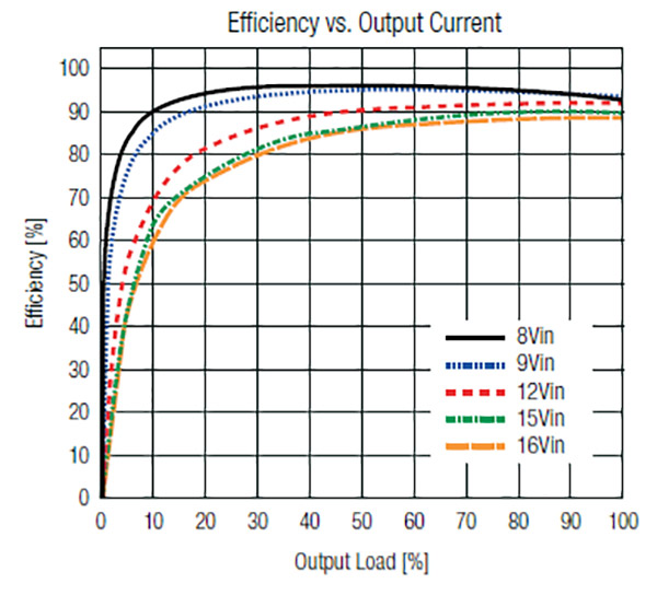RECOM’s RPL-20 15 A buck converter (with 20 A peak capability) with integrated inductor is offered in a compact 7 mm x 7 mm x 4.4 mm thermally enhanced LGA package. The input range is from 4.0 VDC to 16 VDC, allowing both 5 V and 12 V supply rails to be used. The output voltage can be set with two resistors ranging from 0.6 V up to 5.5 V. The output is fully protected against continuous short-circuit, overload, undervoltage, or overtemperature faults. A PG output and EN input allow easy power sequencing. Its high output current capability, small size, light load pulse skipping, and fast transient regulation make the RPL-20 ideal for FPGAs, imaging systems, distributed power architectures, portable telecom equipment and industrial applications.