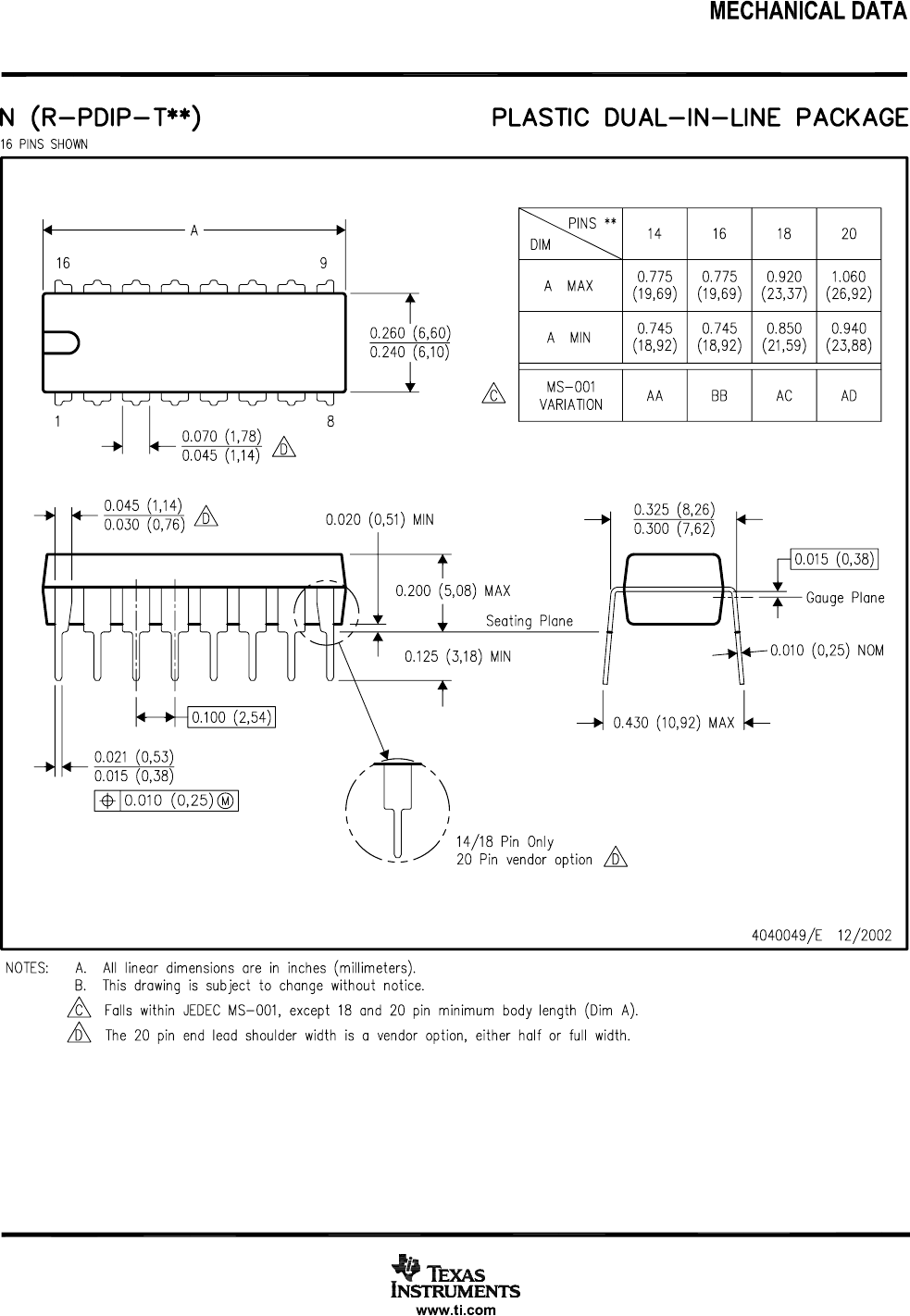 SN74HC08N PDIP (14) 19.34 mm × 6.35 mm