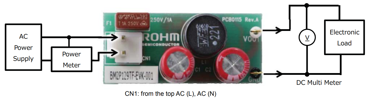 The BM2P129TF-EVK-001 evaluation board outputs 12 V voltage from the input of 90 Vac to 264 Vac. The output current supplies up to 0.167 A. BM2P129TF which is PWM method DC/DC converter IC built-in 650 V MOSFET is used. The BM2P129TF contributes to low power consumption by built-in a 650 V starting circuit. Built-in current detection resistor realizes compact power supply design.