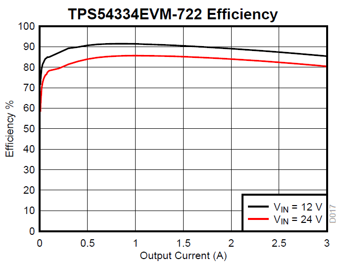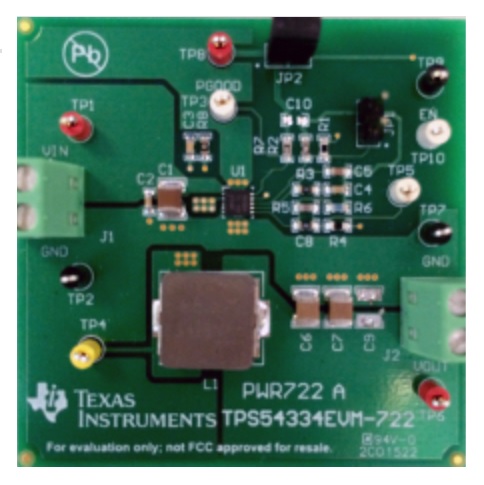 The compensation components are external to the integrated circuit (IC), and an external divider allows for an adjustable output voltage. Additionally, the TPS54334 provides an adjustable undervoltage lockout input. The absolute maximum input voltage is 30 V for the TPS54334EVM-722.