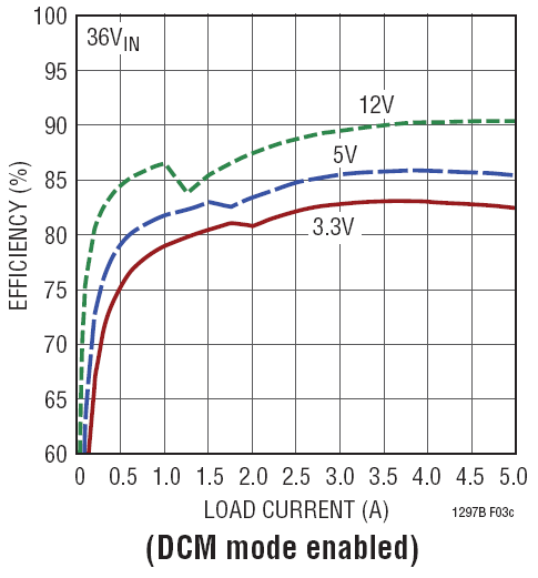 >89%, 24V in, 12V @ 0.5 ~ 5 A >87%, 12V in, 3.3V @ 0.5 ~ 4.5 A >86%, 24V in, 5V @ 0.6 ~ 5 A >85%, 36V in, 12V @ 1.5 ~ 5 A >84%, 24V in, 3.3V @ 1.5 ~ 5 A >82%, 36V in, 5V @ 1.5 ~ 5 A >80%, 36V in, 3.3V @ 1.5 ~ 5 A |