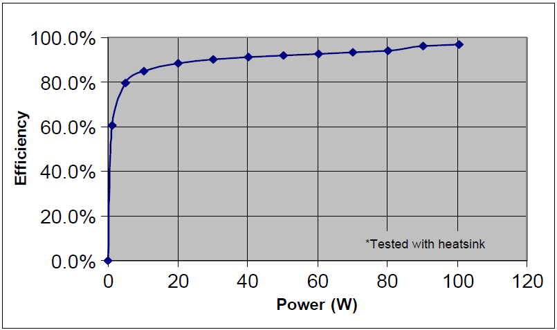 >96%, 100 W @ 4 Ω (w/ Heatsink)