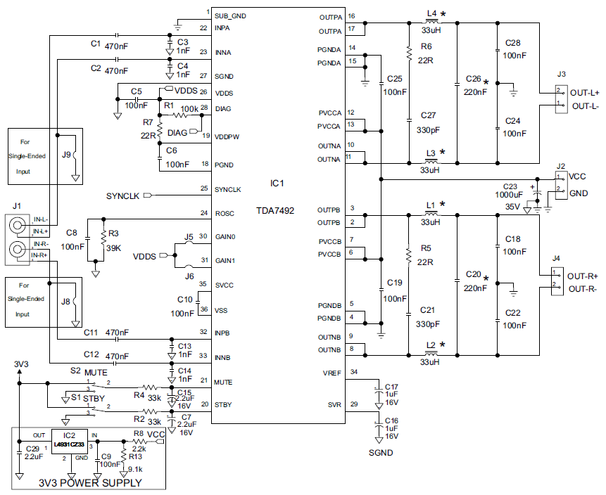 Due to the high efficiency, the TDA7492 device is assembled in PSSO36 and is able to dissipate the generated heating with the use of a reasonably small heatsink.