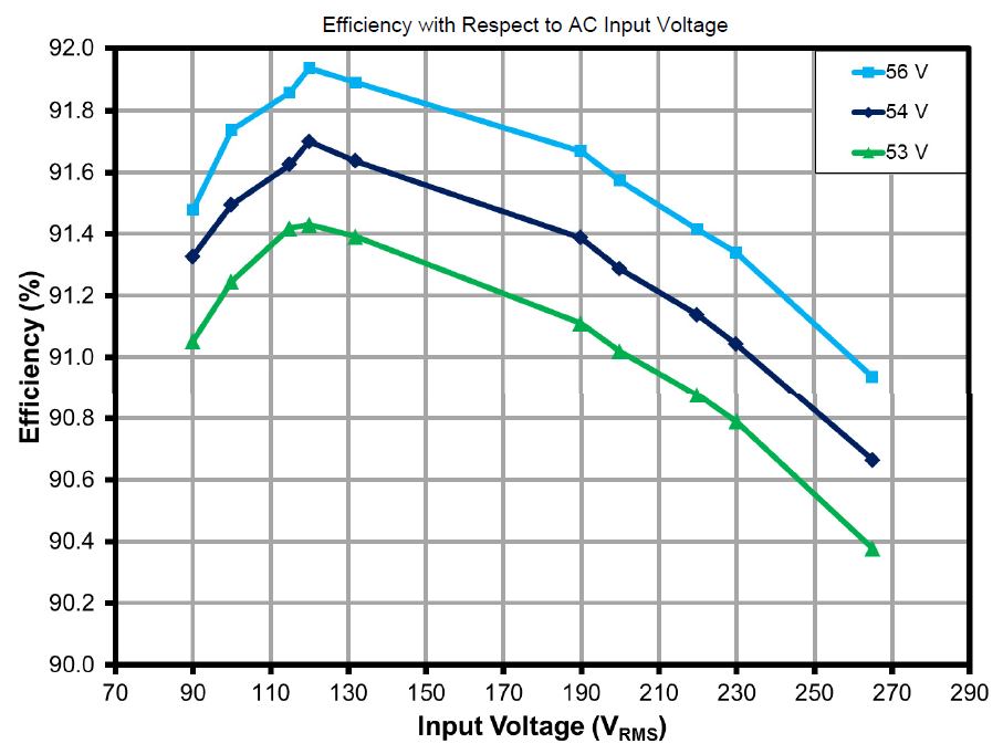 >91%, 93 ~ 196 VAC, @ 56 V >91%, 93 ~ 190 VAC, @ 54 V |