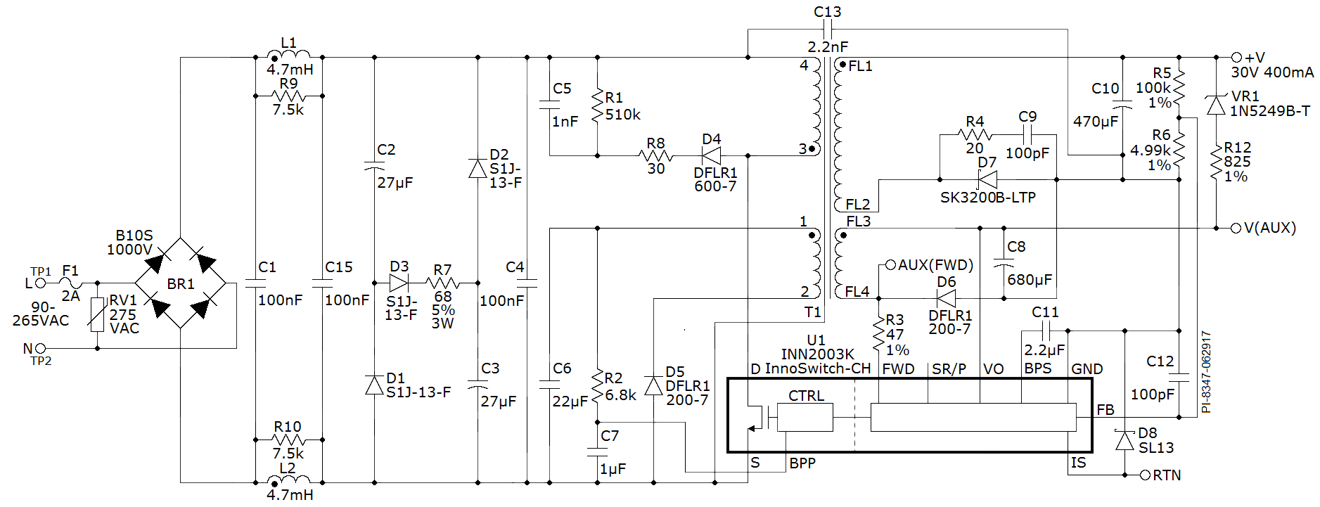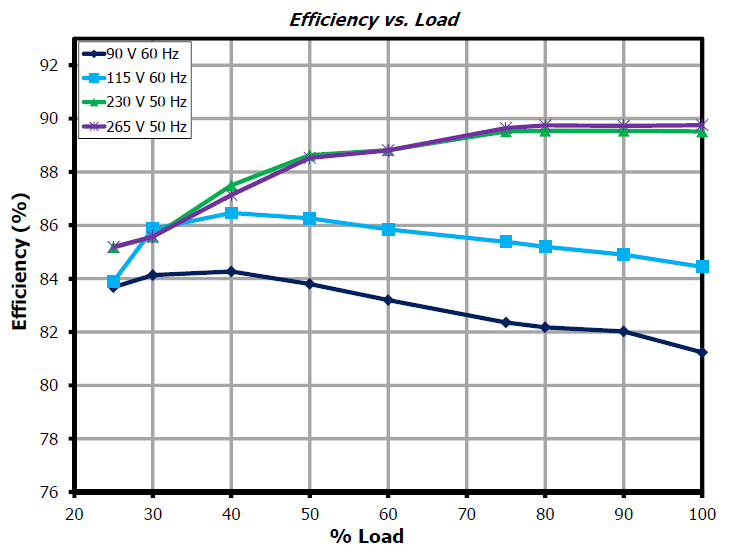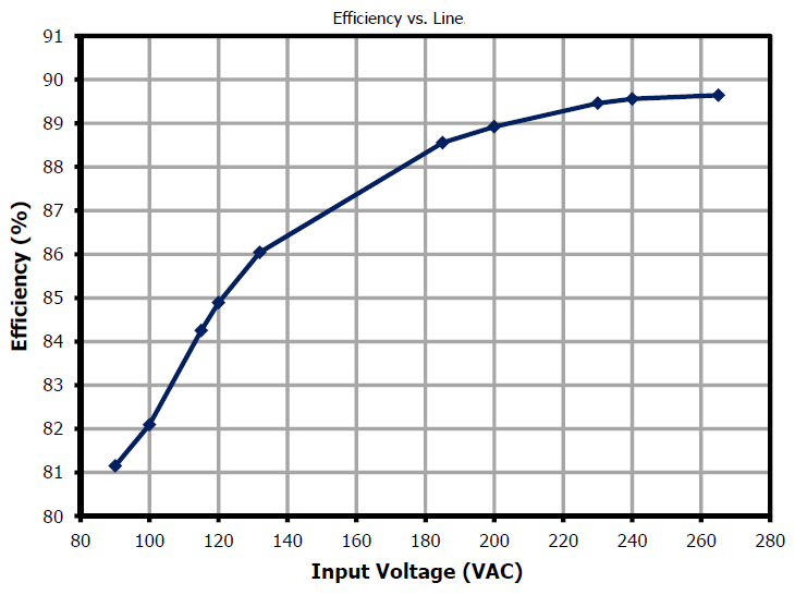 DER-612 using InnoSwitch-CH offers a highly efficient constant voltage supply with a fast transient load response. The design achieves high power factor (0.9) at low line. The key design goals were high efficiency, optimized power factor and low components count.