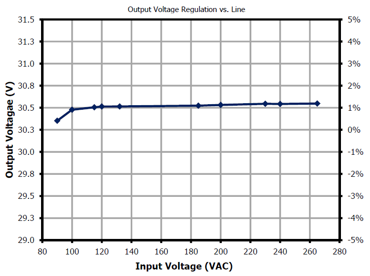 >88%, 230 VAC, 30V @ 44 ~ 100% Load >84%, 115 VAC, 30V @ 25 ~ 100% Load >82%, 90 VAC, 30V @ 25 ~ 90% Load |