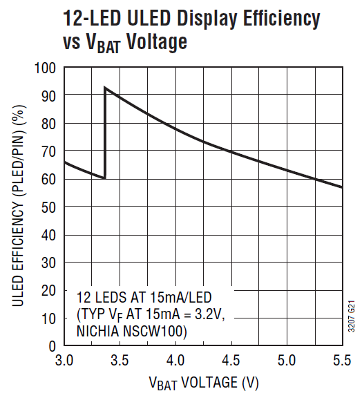 >70%, 3.7 ~ 4.5V in, 3.2V @ 0.015 mA X 12 LEDs