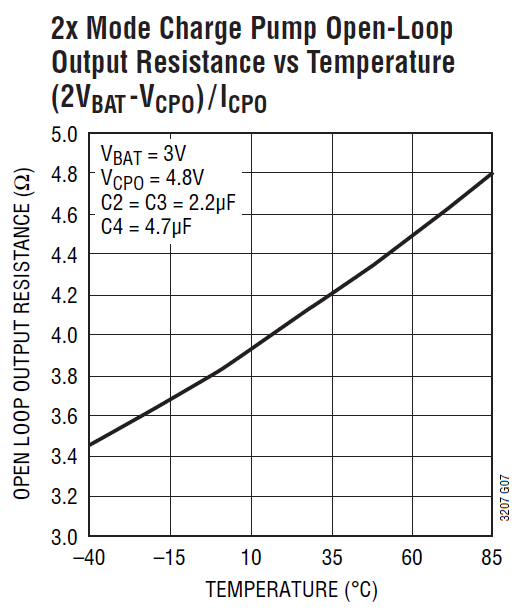 The charge pump optimizes efficiency based on the volt-age across the LED current sources. The part powers up in 1x mode and will automatically switch to boost mode whenever any enabled LED current source begins to drop out. The first dropout switches the part to 1.5x mode and a subsequent dropout switches the part into 2x mode. The part resets to 1x mode whenever a data byte is up-dated via the I2C port.