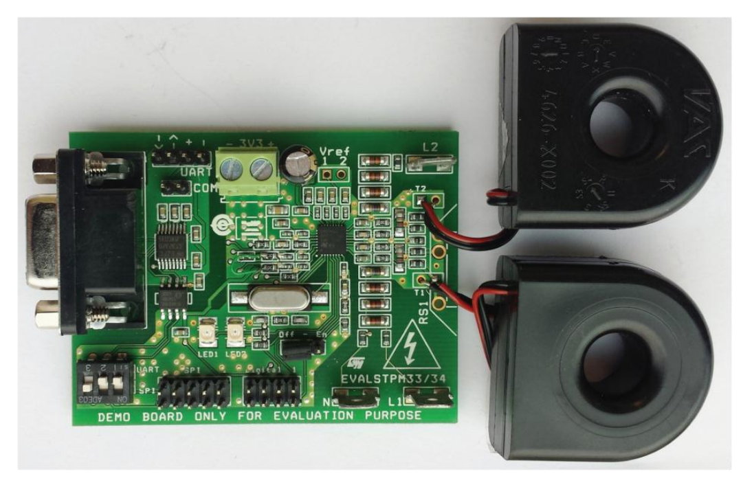 The STPM34 evaluation board is a class 0.2, dual-phase meter with 2 CTs for power line systems with Vnom= 140 to 300 (RMS), Inom/ Imax= 5/100 A(RMS), flin= 50/60 Hz ± 10% and Tamb= -40 to +85 °C.