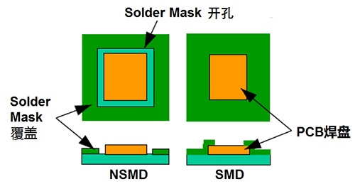 留意厂商建议使用“Solder Mask定义(Solder Mask Defined, SMD)”还是“非Solder Mask定义(Non-Solder Mask Defined,NSMD)”焊接方法。