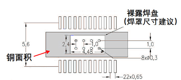 基本上,工程师要了解PCB焊盘需要符合数据手册上要求的尺寸。但同时,如果PCB板布局容许,设计较大的PCB焊盘表面面积也能够帮助增加芯片的散热性能。图3是其中一个例子,生产商建议增大铜面积,以加强裸露焊盘的散热效益。