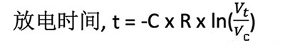 由于超级电容器具有高电容,因此普遍应用于备用或峰值功率的能量供应设备,但与电池不同,能量的供应是依赖电容器的放电,因此放电时间越久,电压值也会随之下降。由于超级电容器包含复杂的等效电路,工程师可根据以下的公式作简单的计算,以了解自己需要多大电容值。