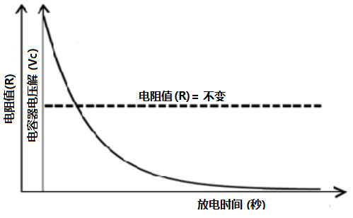 图5,电阻值不变时放电时间与电容器电压降关系图