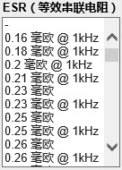图6,超级电容器的ESR (等效串联电阻)筛选列表