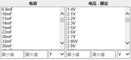 想了解一般市场上超级电容产品“电容值”及“额定电压”的可选范围,可在DigiKey 网站中查询,相关数值会在产品的特性选项中显示,如下图4所示。