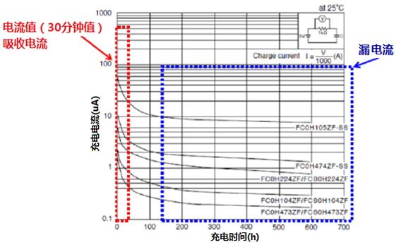 能够让超级电容器在特定电压下保持“已充电”状态下所需的电流量称为“漏电流”(LeakageCurrent)。充电电流随着时间的推移而减小,并且随着时间的推移变得稳定,最后其稳态电流就是“漏电流”。