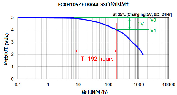 图2,KEMET公司FC系列超级电容器的自放电特性