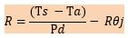 知道散热环境后,我们可以尝试计算散热器的热阻,即是“Thermal Resistance”,它是反映阻止热量传递的能力的综合参量,较低的热阻数值意味着更有效的传热。热阻的单位是“°C/W”,即物体持续传热功率1W时,导热路径两端的温差。对散热器而言,导热路径的两端分别是发热装置(如CPU)与环境空气。我们可以透过以下公式来计算: