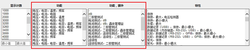 图2,万用表的功能参数选择(图片来源:DigiKey网站)