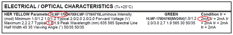 图5,Everlight的HLMP1700 LED及其测试电压和电流