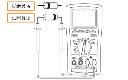 - 完好的二极管,极性反接是不可导通,万用表一般没有读数。