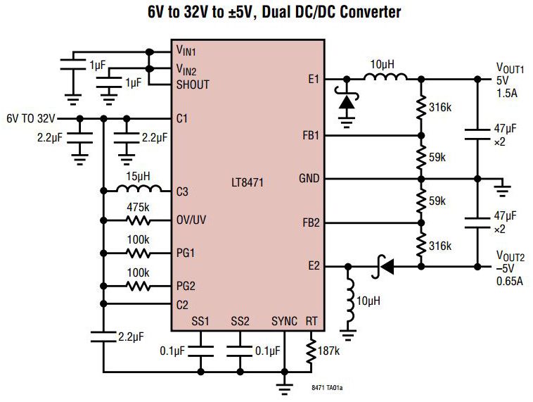 LT8471 Dual Multitopology Converter with 2A Switches