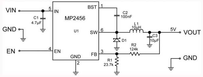 Monolithic Power Systems MP2456 是一款 0.5 A单片降压型开关模式转换器。该器件包含一个内置 MOSFET,使其所需外部元件极少。该器件在 4.5 V 至 50 V 的输入电源范围内实现 0.5 A 峰值输出电流,具有出色的线路和负载调节性能。故障状态保护包括逐周期电流限制和热关断。电流模式运行可减轻电路稳定压力并提供快速瞬态响应。该器件可在 -40°C 至 +125°C 的宽范围内工作,采用 TSOT23-6 封装。