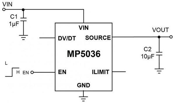 MP5036 Current Limit Switch with 15 V Over-Voltage Clamp