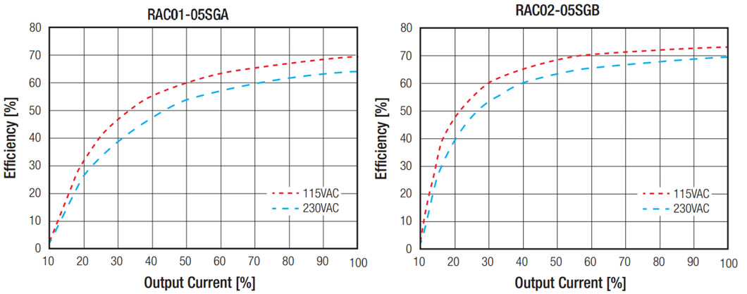 所有模块均通过 EN60950 和 EN62368 认证,并提供三年保修服务。无需额外元件,达到了 EN55022 Class A (RAC-GA) 和 Class B (RAC-GB) 认证。RACxx-GA 系列还通过了 EN60335 家用标准认证。