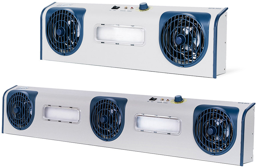 BFN 离子风机配备节能 LED 工作灯,有助于缓解眼睛疲劳和头痛,甚至对情绪产生积极影响 - 同时节省能源成本。它们的发射器由纯钨制成,间距更远,以最大限度减少离子重新结合、提高放电效率并提供更广泛的覆盖区域。集成的发射点清洁器和可拆卸的前后风扇防护罩以及安全开关相结合,使 BFN 系列成为用户友好的离子风机。为了操作员的安全,安全开关在维修期间会关闭离子风机的所有电源。